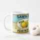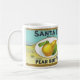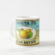 Una etiqueta vintage para la manteca Santa Fe Pear reutilizada sobre una taza.