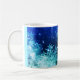 Fondo azul oscuro pero brillante adornado con copos de nieve brillantes y estrellas en diferentes tonos turquesa y empolvadas con chispas blancas. Delicado y bonito. Personalice si lo desea.