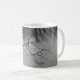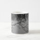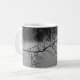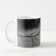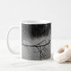 Mug con una foto en blanco y negro de un lago con ramas de árboles y hermosas reflexiones.