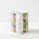Este tazón de café de cerámica se muestra con un diseño impreso de uvas de los amantes del vino.