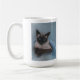 Una suave representación pastel de un gato siamés adorna esta atractiva taza de café.