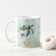 Las tortugas marinas y sus bebés atragantan. Fondo de impresión geométrica acuática con conchas marinas. Hay un enchufe de pop coincidente para teléfonos celulares.