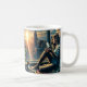 Taza De Café Mujer bebiendo café al amanecer en la ciudad