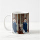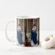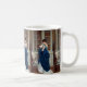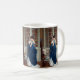 Una mujer de traje azul ha dejado al fiesta para ir a la biblioteca.