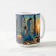 Taza De Café Mujer mirando el amanecer con su gato