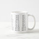 Taza cubierta con la tabla de multiplicación a partir de la 1 al personalizable 6.