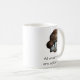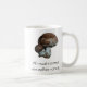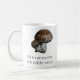 Fotografía de cremini setas (pequeñas setas portabella) con las palabras "Todas las setas son comestibles una vez" impresas debajo. Diseño a ambos lados de la taza.
