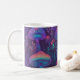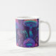 A vibrant and intricate design features glowing, mystical fungi rendered in an iridescent neon palette of violet, teal, magenta, and bright blue. The psychedelic mushrooms are surrounded by delicate, ethereal flowers and foliage, creating a truly whimsical and enchanting forest scene.
