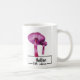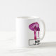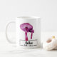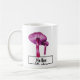 Café de hongos morados en el hongo. Imagen de un hongo morado y texto que dice: Hola Otoño.