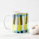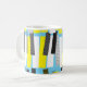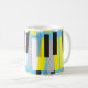 Taza De Café Música de jazz, patrón geométrico azul amarillo.