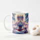Etéreo chica de anime rosa y azul meditando bajo la luna llena.