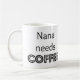 "Nana necesita café" impreso en ambos lados. Mugre blanca con letras negras.Disponible en 11 onzas o 15 onzasDimensiones: