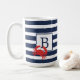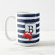 Taza De Café Náutico Azul Marino Rayas Rojo Cangrejo Monograma