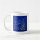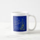 Hermosa escena azul del árbol de Navidad desatada por copos de nieve. Un regalo de invierno perfecto.