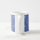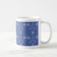 Un diseño blanco sobre azul con árboles y estrellas brillantes decora esta tranquila jarra.