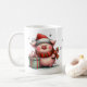 Este lindo cerdo le desea una Feliz Navidad. Cambiar las tazas cuando las estaciones cambian es una actualización rápida para tu decoración doméstica. El saludo de vacaciones puede ser cambiado. Gráfico asistido por IA adquirido con uso comercial. Pintura: RedHeronLighthouse