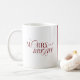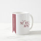 Modernos Navidades Navidades diseño de tazas de café en colores festivos en rojo y blanco, con elegante letra de guión que dice 'Merry and Bright' y una cinta roja mínima con espacio para tu nombre o texto personalizado.