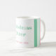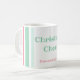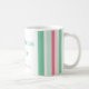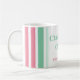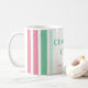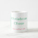 Colores deliciosos: rosa y verde menta. Una gran combinación para Navidades. Estas animadas franjas retro son muy divertidas en esta taza de café de vacaciones. El texto de nuestra minoría "Navidades Cheer" es editable. Asegúrese de que los nombres de ejemplo y la fecha son los que desea.