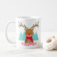 Agradar las vacaciones con este adorable tazón de reno personalizado con brillantes cuernos y un alegre amigo de nariz roja. Personalizada con un nombre, esta taza festiva hace un dulce regalo para los niños, nietos o amantes del cacao. Ideal para los Navidades por la mañana o para el cacao de invierno.