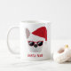 Sienta tu bebida caliente favorita de esta taza festiva de frenchie o envía como regalo perfecto de Navidad a alguien que conoces que simplemente ama los bulldoges franceses. El diseño es de doble cara, con un bulldog francés blanco vestido con un sombrero de Santa Claus rojo y, por supuesto, con unas gafas de sol de diseño.