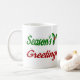 Mug con los saludos de la temporada en texto 3D y Navidades holly. Mug disponible en varios estilos y colores. Hace un gran regalo de Navidad para tomar bebidas calientes en noches frías durante las vacaciones.