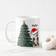 Este hermoso perro de Pembroke Welsh Corgi tiene la cabeza inclinada dentro de un lindo gorra de Santa Claus. El cachorro está sentado frente a un árbol de Navidad bonito decorado con adornos coloridos. Personaliza tu nombre de mascota en una bonita cursiva bajo el maravilloso dibujo de mi perrito favorito en una taza festiva.