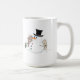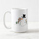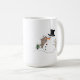 Ilustracion de un Navidad de estilo personalizado snowman en una escena nevada con casas cubiertas de nieve y un árbol en el fondo.