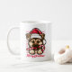 ¿Estás buscando un tazón lindo y festivo para disfrutar de tus bebidas calientes esta temporada de vacaciones? No hay más que fijarse en este adorable diseño de un cachorro de pastor alemán vestido con un sombrero de Papá Noel y con un bastón en la boca. Esta taza es perfecta para los amantes del perro y para cualquiera que aprecie un poco de humor y travesuras. El fondo es blanco, con las palabras "Feliz Navidad" escritas en rojo debajo del cachorro. Puede personalizar con su propio texto, imágenes o colores en Zazzle. Pida la tuya hoy y haz sonreír a alguien con este dulce y gracioso regalo.