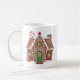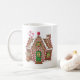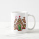 Navidades Gingerbread House Design Mug. Una casa de jengibre colorida, como la alegría de las vacaciones, se sentó rodeada de cañas de azúcar, tentando al Santa mismo con su deliciosa.