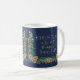 Celebra la temporada con esta taza de Navidades festivos que presenta Relieve metalizado dorado con el texto tipográfico con el estilo Art Deco y escritura decorativa. Rico fondo azul marino con elegantes acentos purpurinas de oro y brillantes estrellas brillantes. Todas las obras de arte pintadas y diseñadas gráficamente por Audrey Jeanne Roberts, artista y diseñador con licencia internacional, copyright.