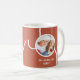 Esta moderna taza de Navidad Holiday está decorada con la palabra JOY en un fondo de óxido. Personalizable fácil con tu foto y nombre.