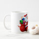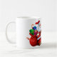 El tazón de café de cerámica se muestra con un estampado de arte Santa de vacaciones de Navidades festivos con Feliz Navidad en texto. Personalizar este artículo o compra tal cual.