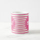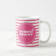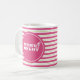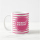Estas tazas Navidades únicas tienen rayas rosas y verdes con las palabras "Merry & Bright" en tipografía blanca en negrita. Una elección moderna y de moda para las vacaciones de invierno o para regalar un elefante blanco de pinkmas. Para ver el tema completo del magenta, visite www.zazzle.com/dotellabelle