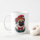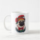 Los "Navidades Pug Mug" se jacta de una escena alegre de un tierno cerdo sobre un sombrero de Santa en medio de un paisaje nevado. Los colores vivos de las vacaciones y una expresión encantadora hacen que beber sea delicioso.