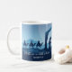 Este bello dibujo azul de la escena de la natividad es una magnífica taza de Navidades religiosos para una familia devota. Para nosotros nace un niño. Envíe bendiciones de vacaciones con este regalo para una iglesia cristiana.