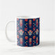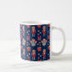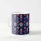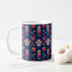 ¡Esta fabulosa taza de arte folclórica de Navidades azules con un patrón de ángeles, petardos, regalos y estrellas se vería genial en tu mesa, escritorio o cocina! Es muy festivo y combina con la decoración de los Navidades: es rústico pero retro, moderno y tradicional. Se ve fantástico y le da un toque de Navidades extra. Se coordina perfectamente con la ropa de cama y las galletitas azul del folk Art Angel Nutcracker.