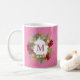 Modernos y decorativos Navidades de PINK fueron monograma CAFÉ MUG con texto de personalizable - CELEBRAR JESÚS en la parte delantera y un MONOGRAMA en la parte posterior - que usted puede personalizar con sus propios detalles. Hay un sutil mensaje de azulejos que dice que los NAVIDADES BENDICEN. En la colección NAVIDADES WREATH by Berean Designs se ofrecen regalos de Navidad coincidentes y decoración de casa.