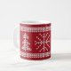 Navidades tazas con Navidades patrón de suéter. Festividades de Navidades rojos y blancos con un diseño fea de patrón de cuchillo para suéter con un árbol de Navidad, copo de nieve y reno. Creado por ©Lesruba Designs.