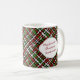 Los hilos de colores gráficos trenzados diagonalmente forman un patrón de Navidades divertidos y animados. Los colores tradicionales de temporada rojo, verde y blanco le dan el ambiente adecuado para el desayuno o para cualquier pausa de café o té durante todas las preparaciones y festividades. ¡Sólo ve con el ánimo alegre! El texto en ambos lados se puede personalizar fácilmente.