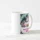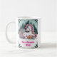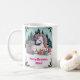 Tome sus bebidas favoritas de vacaciones en una taza mágica con unicornio entre árboles de Navidad y regalos en tonos suaves rosa y turquesa. Perfecto para los niños, los amantes del unicornio o cualquiera que desee un toque festivo.