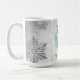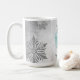 Disfrute de su café matutino en esta temporada de vacaciones con un Verde azulado café de regalo para Navidades. El diseño de Mug incluye un vibrante regalo de Navidades envueltos adornado con copos de nieve grises y blancos sobre un fondo gris. También hay artículos de regalo y de vacaciones disponibles con este diseño.