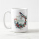 Taza De Café Navidades Wreath y Robin Rojo Con Monograma
