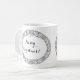 Un Navidad de la moda Coffee Mug a un personalizar con Navidades coronados por hiedra, hiedra, puntias, conos de abetos y brotes de abetos. Esta corona de Navidades dibujada a mano está en negro sobre fondo blanco que puedes cambiar si lo deseas, con 'Feliz Navidad' también en negro, que también puedes cambiar.