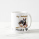 Acuarela Negra y Browns DOBERMAN y taza de café matutino. Una raza de perro asombrosamente hermosa, un compañero amoroso, amigo leal y café matutino. ¡ES LO QUE ES! Sólo un momento de tiempo impresionante, a medida que el negocio del día comienza. Esta taza viene con elegante letra impresa y elegante título de guión, "My Doberman and Morning Coffee"., una fuerte acuarela Imagen de un DOBERMAN en toda su belleza natural. Artista Tanya Arseneau Nanniesfineart