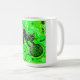 Vibrant neon illustration of a mischievous black cat playing with a ball of yarn on a bright lime green background, drawn in bold doodle graffiti lines with arrows, swirls and quirky symbols that create an energetic street-art look and a fun modern feline vibe that instantly grabs attention.