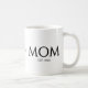 Modern, minimalist MOM ESTABLISHED Personalized Coffee Mug with CUSTOMIZABLE text. Minimal elegant classic black serif font mug. Can be personalized by changing MOM to MUM, and the simple sans serif EST 2025 can be changed to edit the year (and add subsequent years for additional children, if needed). Add your name in the middle to make this an extra special, personalized gift. This Mom mug would make a great gift for Mother's Day—especially for a new mom—or birthday, or "just because". This is a timeless, stylish design that speaks volumes. Please message me for extra branding for your mom group or church fellowship gifts. Other drinkware styles available. Matching gifts available, so you can create awesome mom gift sets.