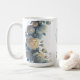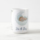 New mom to be baby shower Coffee Mug This design features a delicate watercolor illustration of a baby boy resting on a soft, fluffy cloud, framed by a lush arrangement of midnight blue and champagne gold roses.