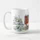 Taza De Café Nieve roja de aves en el granero de invierno de lo