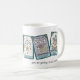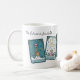 Esta taza de revelación de bebé inspirada en el tarot incluye la frase "El futuro está previsto" junto con cinco juguetones tarot dibujados a mano que predecían gafas de bebé, sin sueño, charcos, pañales y amor. ¡Edita el texto para miembros específicos de la familia como una futura tía, abuela o padrina! Un regalo dulce y único para cualquiera que ame un poco de magia y capricho, esta taza es perfecta para anunciar un embarazo, revelar un género de una bebé o revelar un bebé se debe a abuelos, amigos o una esposa. Coordina maravillosamente con otros artículos de la colección de ducha de bebé tarot.
