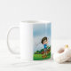 Un niño en el campo de golf jugando una ronda de golf. Este diseño se ve realmente efectivo en este Mug